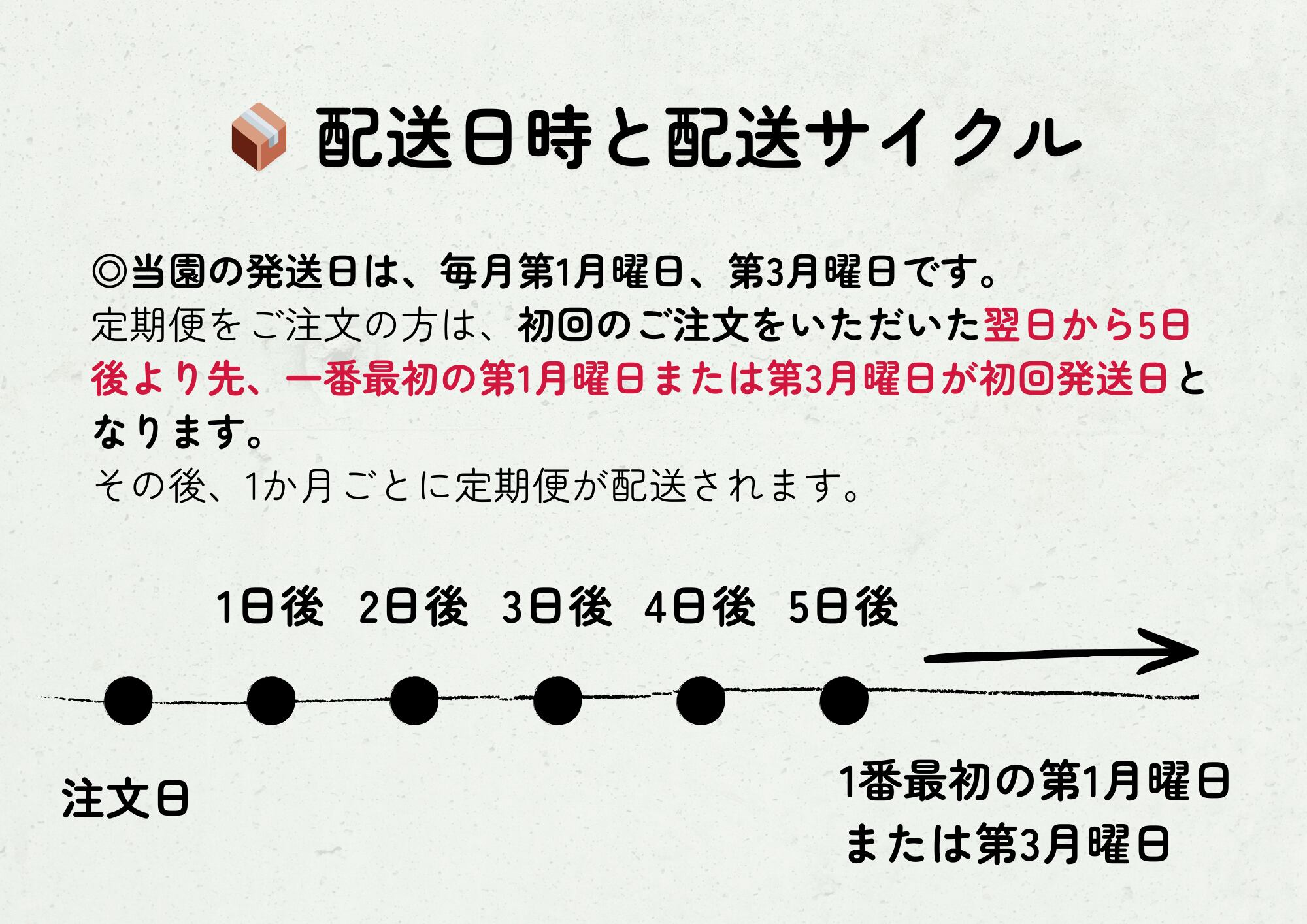 ◎当園の発送日は、毎月第1月曜日、第3月曜日です。